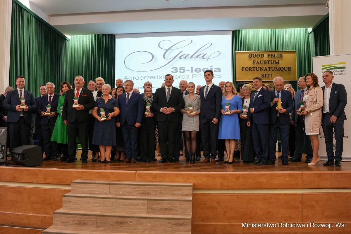 - Dzisiejsze wydarzenie to świadectwo sukcesu polskich rolników, którzy systematycznie budują markę polskiej żywności na świecie. Dzięki Wam i Waszej wierze w sukces przezwyciężymy wszystkie trudności - powiedział minister rolnictwa i rozwoju wsi Stefan Krajewski podczas uroczystej gali 35-lecia ogólnopolskiego konkursu Agroprzedsiębiorca RP 2025.