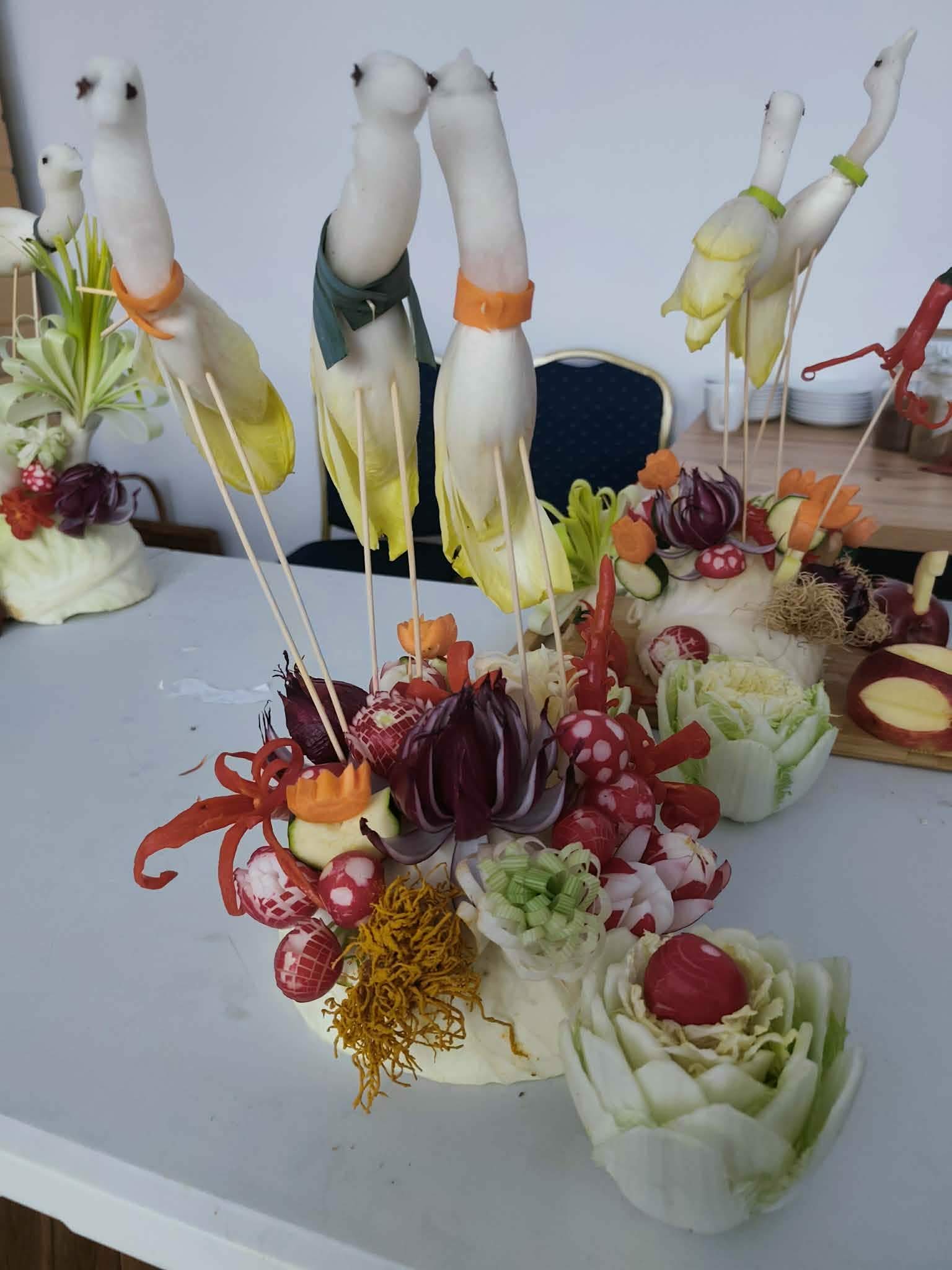 Spotkanie było nie tylko okazją do nauki sztuki rzeźbienia w owocach i warzywach, ale także doskonałym momentem na kreatywną zabawę i integrację w atmosferze pełnej inspiracji. Warsztaty dostarczyły mnóstwo radości i satysfakcji, a także pokazały, że carving to nie tylko sztuka kulinarna, ale również sposób na urozmaicenie codziennych potraw oraz wyjątkowa forma artystycznego wyrazu.
